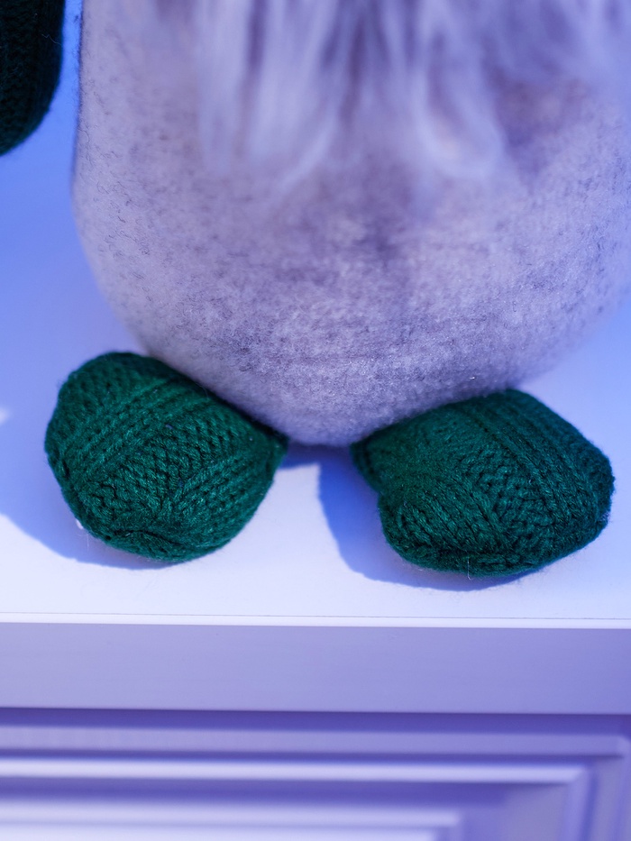 Материал из текстиля делает фигуру мягкой на ощупь. «Лосяш» привлекает внимание своим зелёным нарядом и милым дизайном, идеально дополняя интерьер в стиле сканди- или кантри.