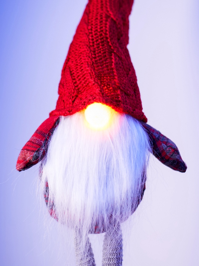 Декоративная фигура в образе гнома в красном костюме добавит в ваш интерьер атмосферу тепла и уюта. Она станет выразительным акцентом в гостиной, спальне или праздничной композиции. Мягкий текстильный материал и тёплое белое свечение создают ощущение домашнего комфорта, а питание от батареек позволяет разместить украшение где угодно — без проводов и розеток.
