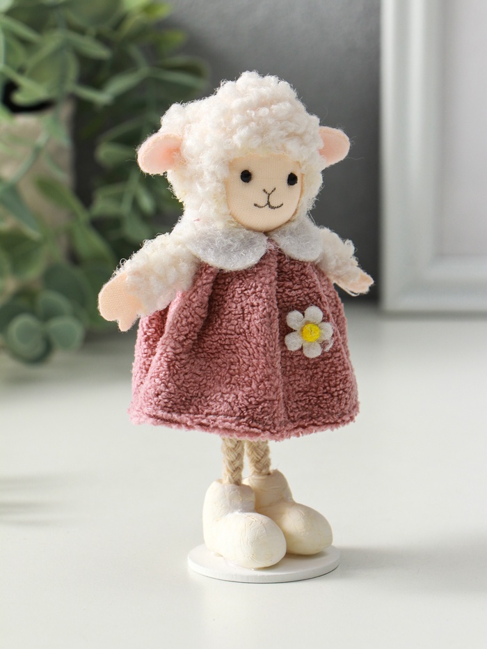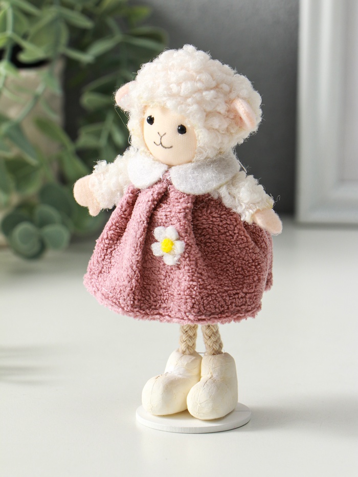 Эта милая овечка в розовом платье станет тёплым знаком внимания для близкого человека или уютным дополнением домашнего интерьера. Фигурка с мягким текстильным платьем и аккуратной проработкой деталей создаёт атмосферу нежности и спокойствия.