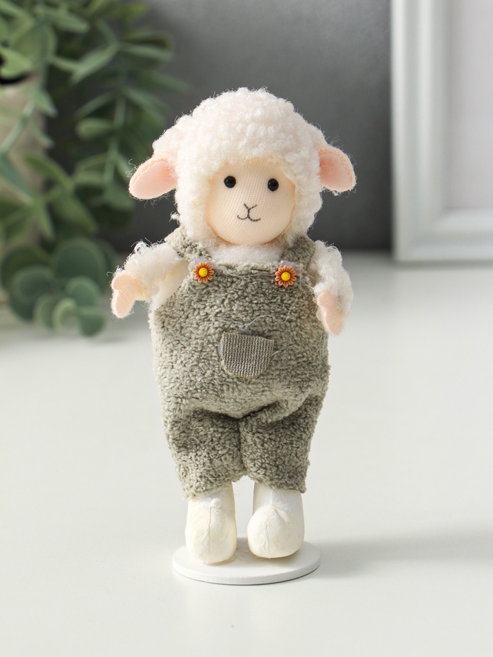 Этот уютный текстильный барашек в комбинезоне — готовый символ нежности и заботы. Он создаёт атмосферу тепла в детской комнате или становится милым акцентом на полке, даря чувство спокойствия и умиротворения.