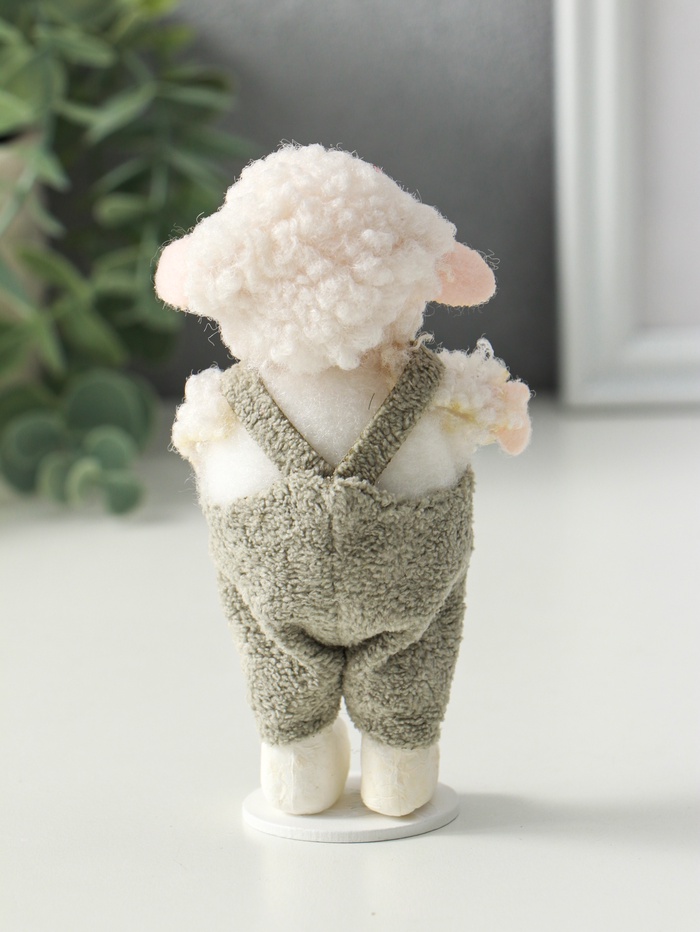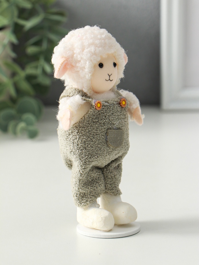 Фигурка «Белый барашек в зелёно-сером комбинезоне», 4×6.5×13 см