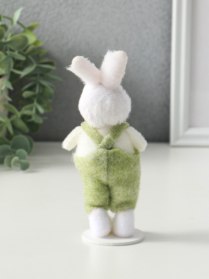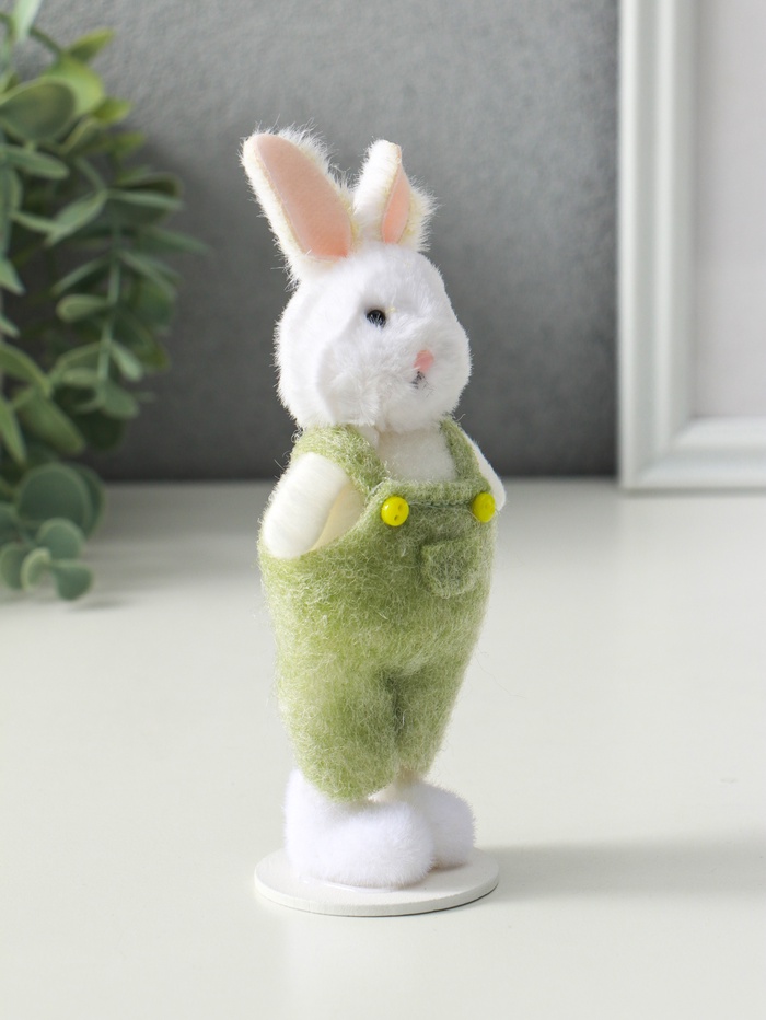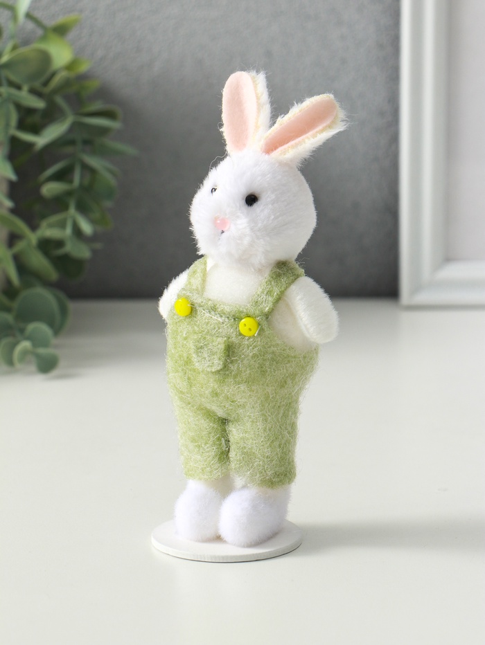 Фигурка «Белый зайчик в зелёном комбинезоне», 4×6×15 см