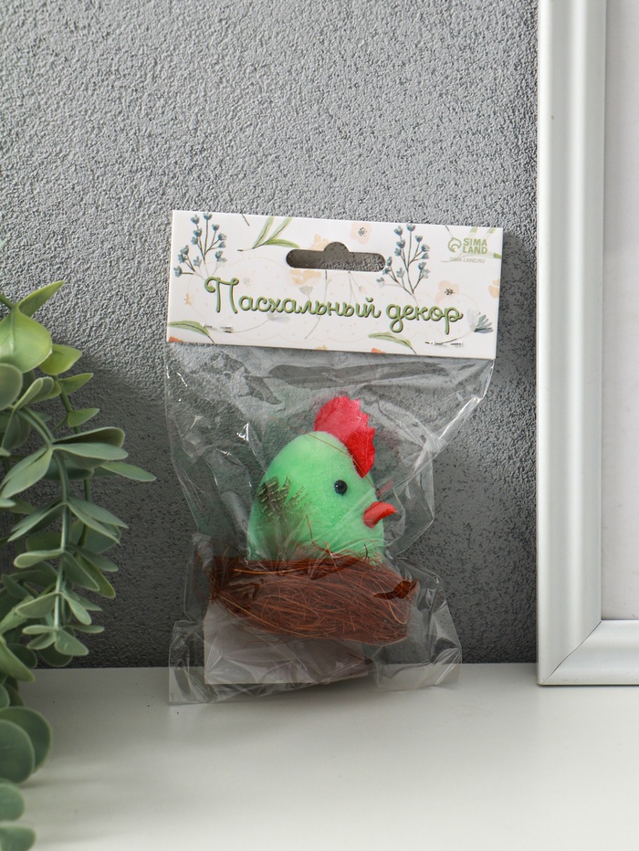 Этот пасхальный цыплёнок в гнезде станет тёплым символом праздника и уюта в вашем доме. Композиция создаёт настроение весеннего пробуждения и домашнего тепла, идеально вписываясь в пасхальное убранство стола или праздничный декор интерьера. Нежная фигурка птенца, окружённая пушистым гнездышком, вызывает улыбку и дарит ощущение заботы.