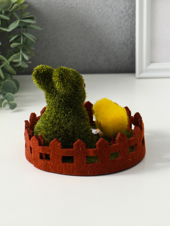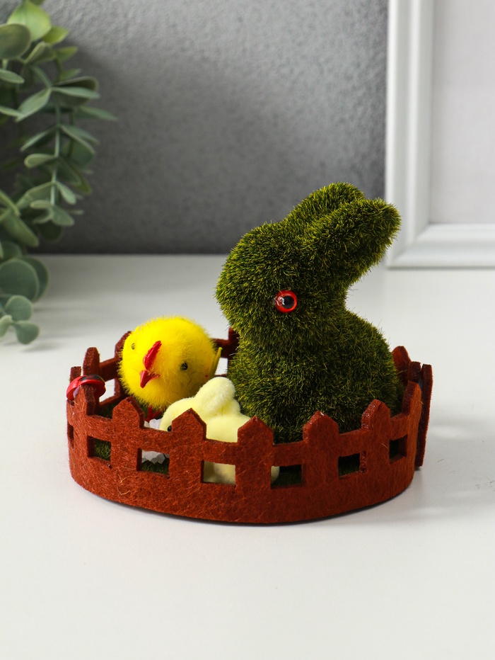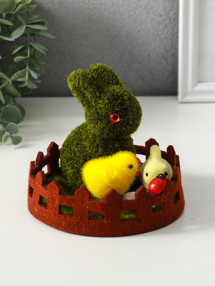 Фигурка пасхальная «Зайчик с цыплятами на лужайке с забором», 12.5×12.5×10.5 см
