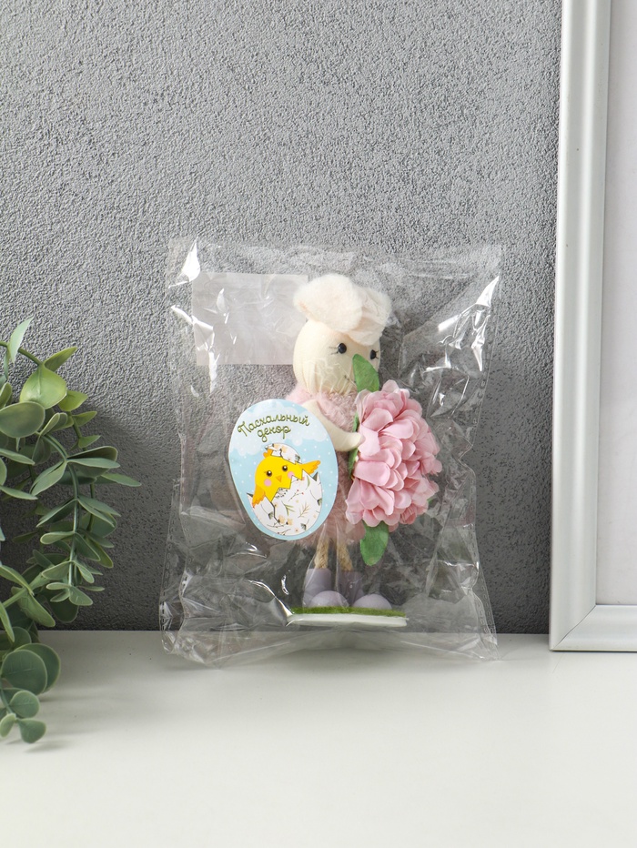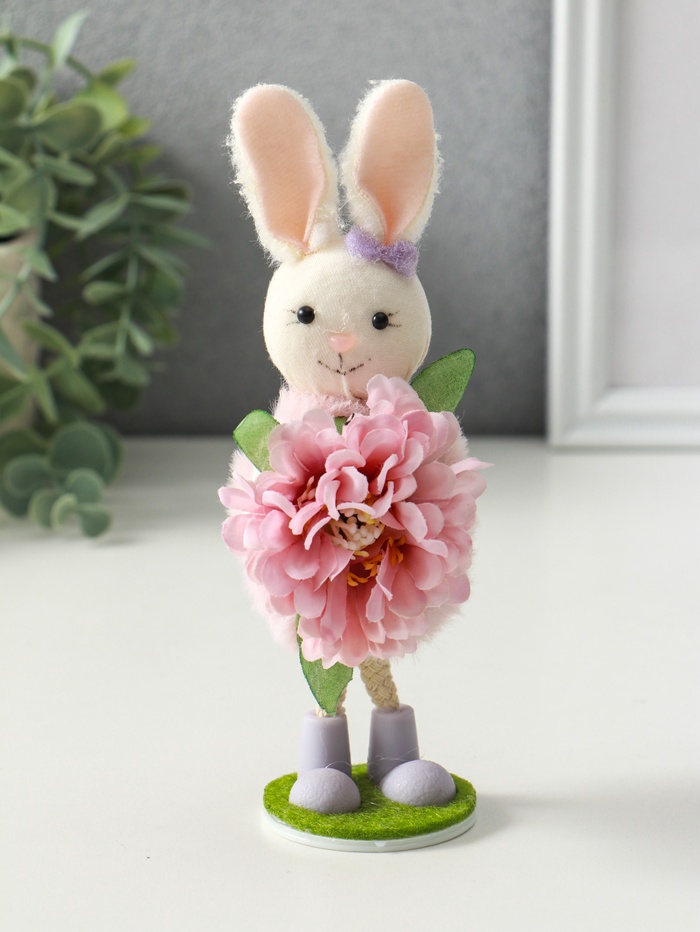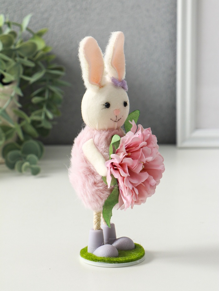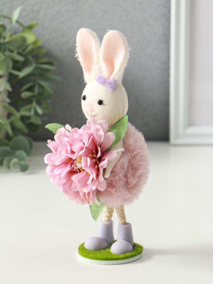 Фигурка пасхальная «Зайка в платьице с бутоном пиона в лапках», 5.5×5×19 см
