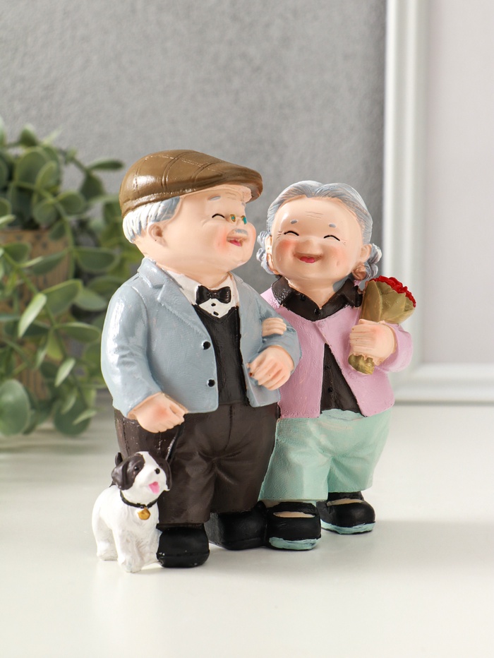 Эта фигурка из полистоуна запечатлела момент нежной близости двух любящих сердец. Дедуля и бабуля, застигнутые во время романтичной прогулки, стали олицетворением верности, тепла и семейного счастья, которое прошло через годы. Статуэтка передаёт ту самую тихую радость, которую дарят десятилетия, прожитые вместе.