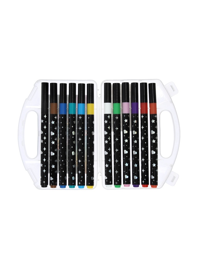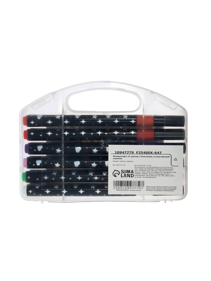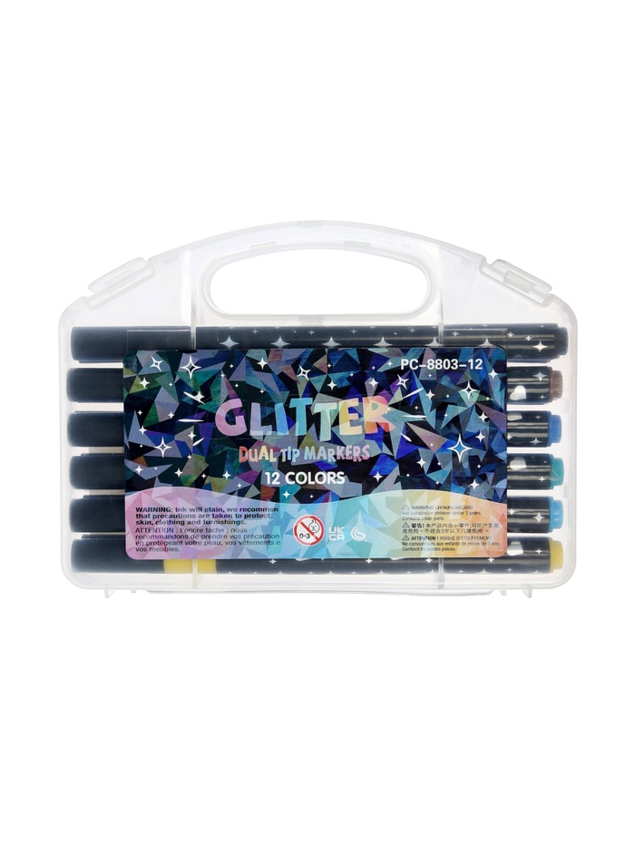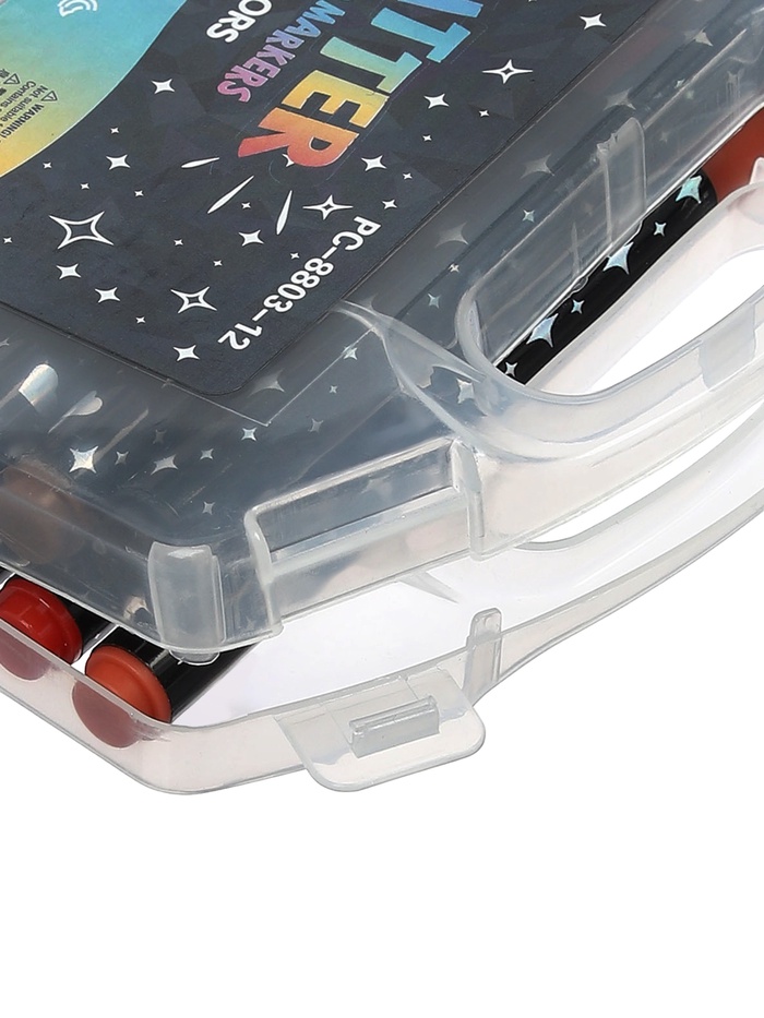 Фломастеры 12 цветов с блестками, в пластиковой коробке