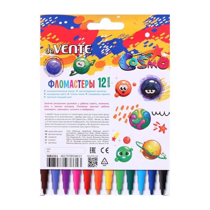 Фломастеры deVENTE. Cosmo 12 цветов с вентилируемым колпачком, в картонной коробке с подвесом