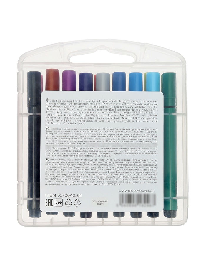 Технические характеристики Фломастеры 18цв "BRIGHT COLORS JUMBO", утолщенные, в пластиковом пенале