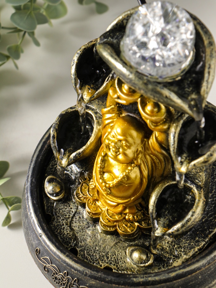 Этот настольный фонтан с фигуркой Хотея — больше, чем декор. Он создаёт в помещении островок спокойствия, где мягкий звук текущей воды и тёплая подсветка помогают отвлечься от суеты и настроиться на позитивный лад. Компактный размер делает его идеальным спутником для рабочего стола в офисе или личного пространства дома.