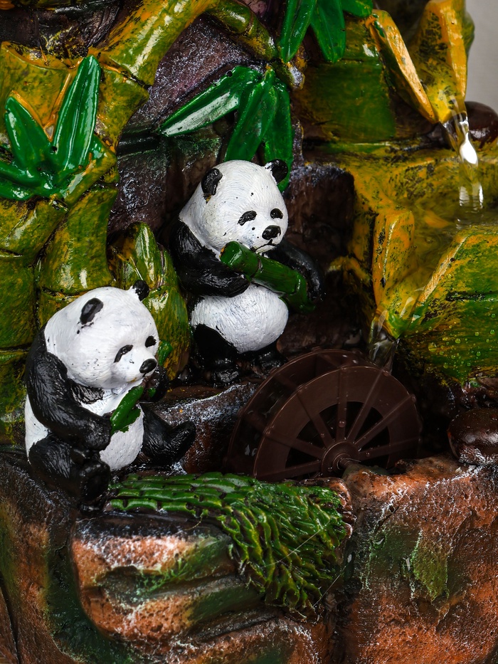 Создайте уютный уголок с живой энергией воды! Декоративный фонтан «Панды на мельнице» — это многоуровневая композиция, где вода струится по вращающемуся колесу мельницы. Встроенная светодиодная подсветка мягко выделяет фигурки животных и движение воды, создавая расслабляющую атмосферу в вечернее время.