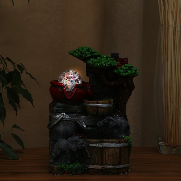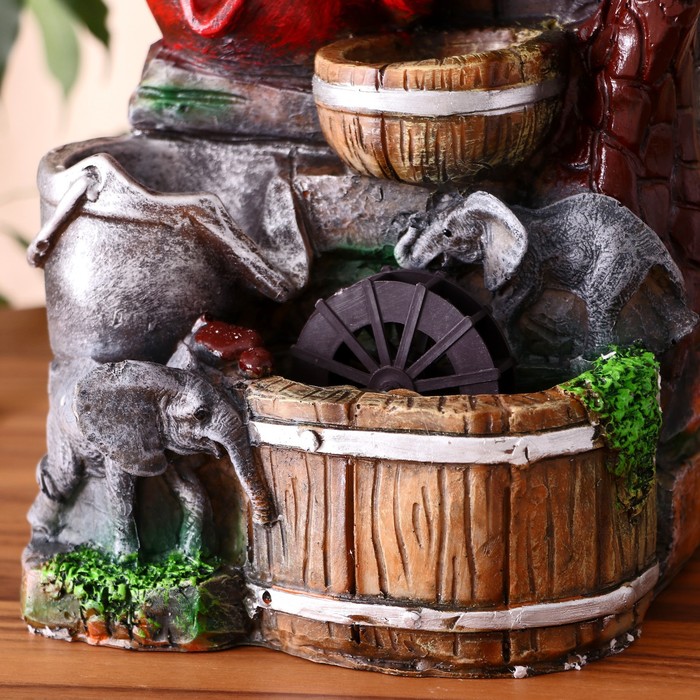 Фонтан «Слоники у воды, бочки и ведёрко», 12×18×25 см, с подсветкой