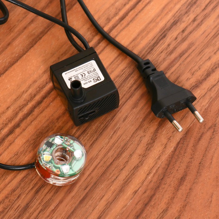 Технические характеристики Фонтан «Слоники у воды, бочки и ведёрко», 12×18×25 см, с подсветкой