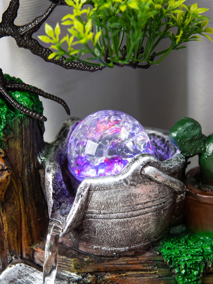 Фонтан «Ведёрки под деревом», 32×15×13 см, с подсветкой