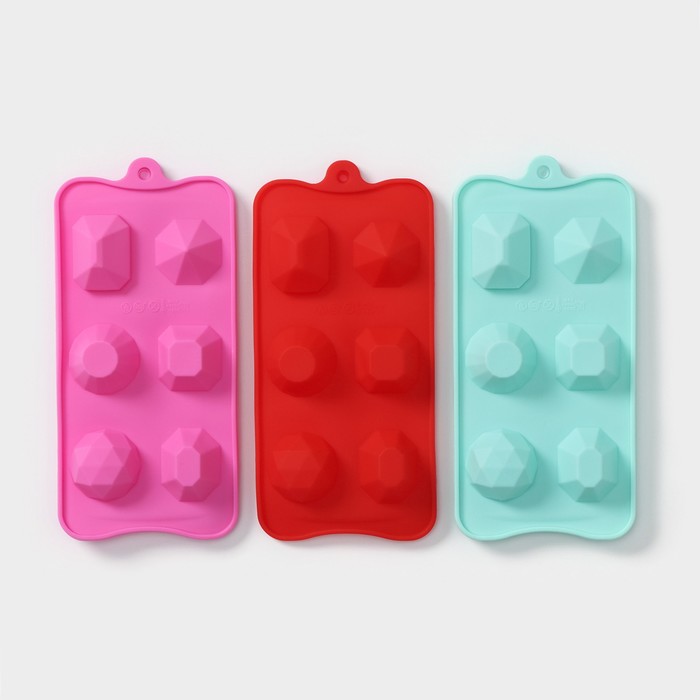 Форма для льда Доляна «Драгоценные камни», силикон, 22.5×10.6 см, 6 ячеек (d=4 см), цвет МИКС