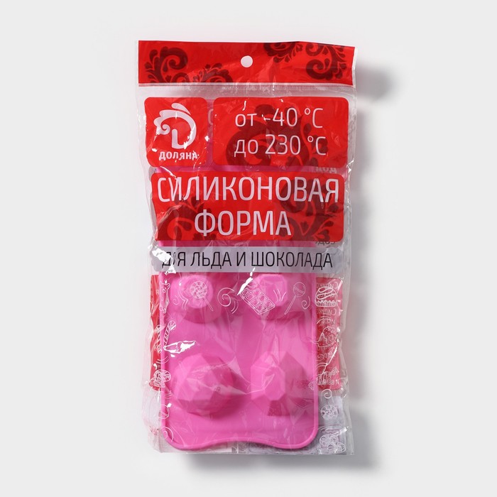 Технические характеристики Форма для льда Доляна «Драгоценные камни», силикон, 22.5×10.6 см, 6 ячеек (d=4 см), цвет МИКС