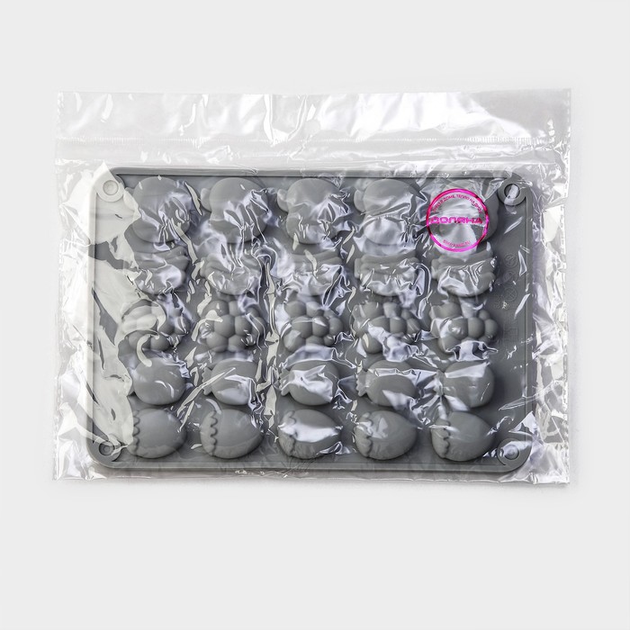 Форма для мармелада Доляна «Фрукты», силикон, 21.3×14.4×1.5 см, 25 ячеек (3×2 см), цвет серый