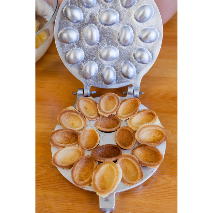 Данная форма предназначена для приготовления печенья из песочного и полупесочного теста по любому рецепту. Длинные ручки состоят из прутка с деревянными наконечниками, защищающими пальцы и ладони от ожогов.