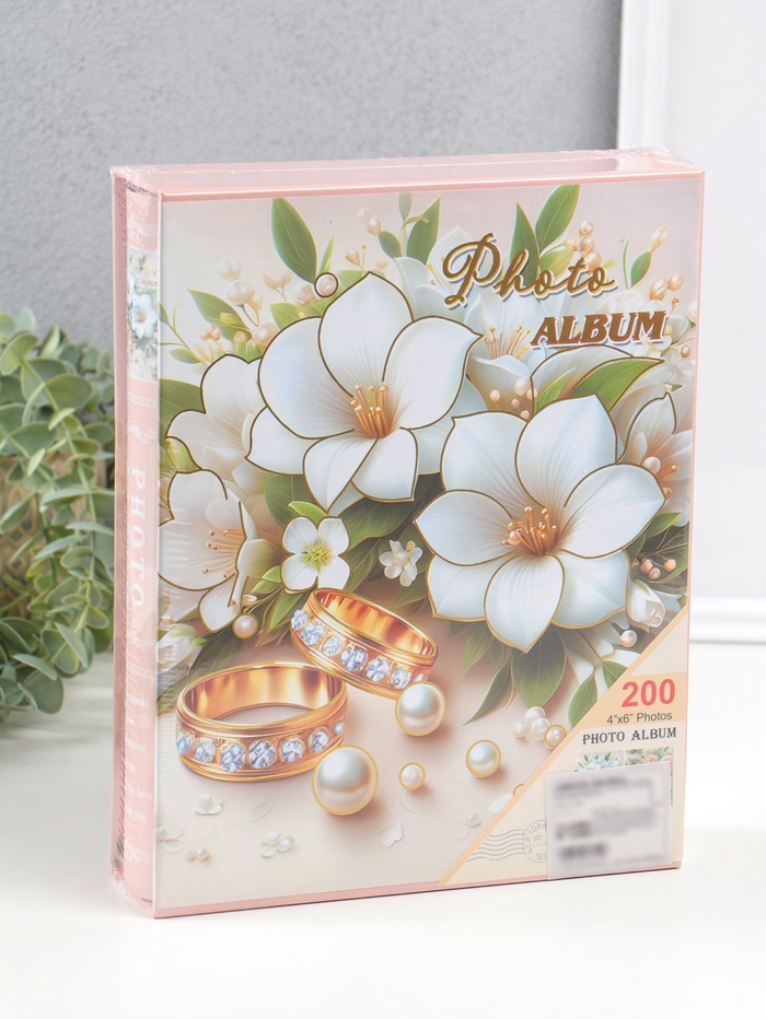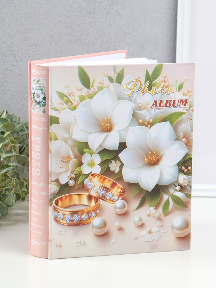 Фотоальбом на 200 фото 10×15 см «Кольца молодых и свадебный букет», в коробке, 5.5×20.5×26 см