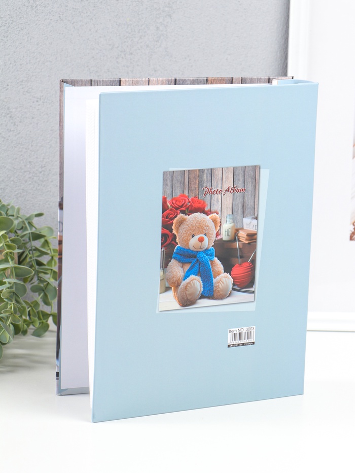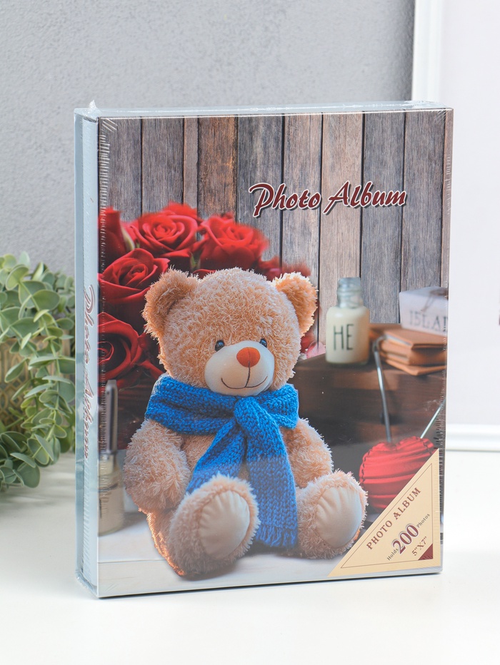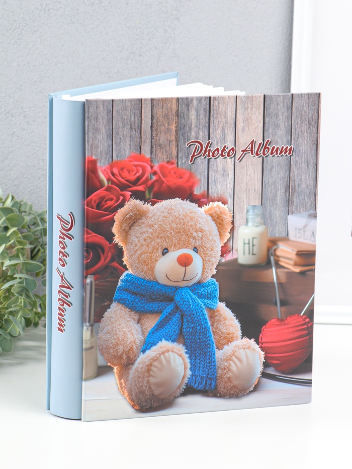 Фотоальбом на 200 фото 13×18 см «Медведь в синем шарфе и розы», в коробке, 5.5×23.5×29.5 см