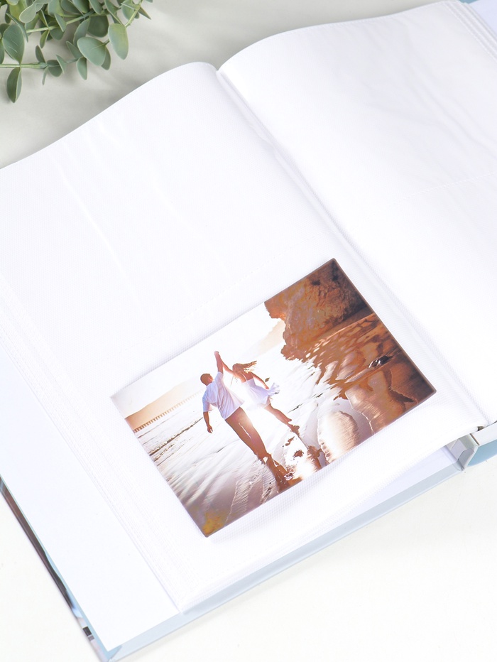 - Листы из белого пластика надёжно фиксируют фотографии.