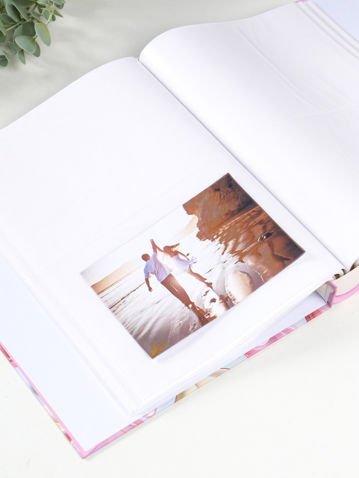 Этот фотоальбом для влюблённых создан, чтобы бережно хранить историю ваших самых тёплых моментов. Он вмещает двести снимков стандартного формата, сохраняя их в идеальном состоянии на плотных белых листах. Твёрдая картонная обложка надёжно защищает ваши воспоминания, превращая коллекцию фотографий в целостную историю любви, которую приятно перелистывать снова и снова.