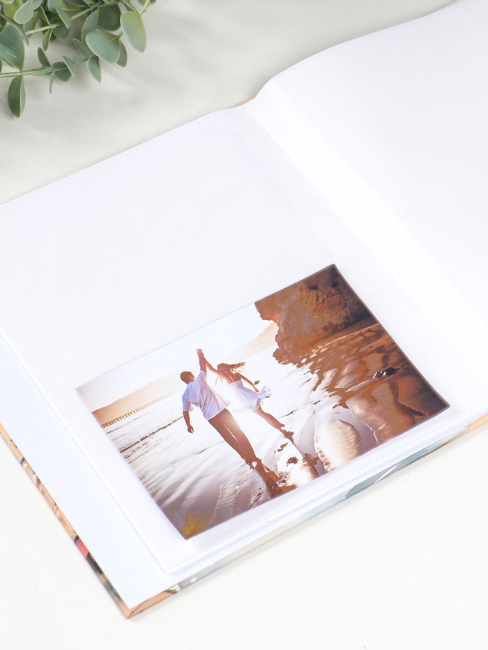- Плотные белые листы из пластика надёжно защищают фотографии от пыли и случайных повреждений.