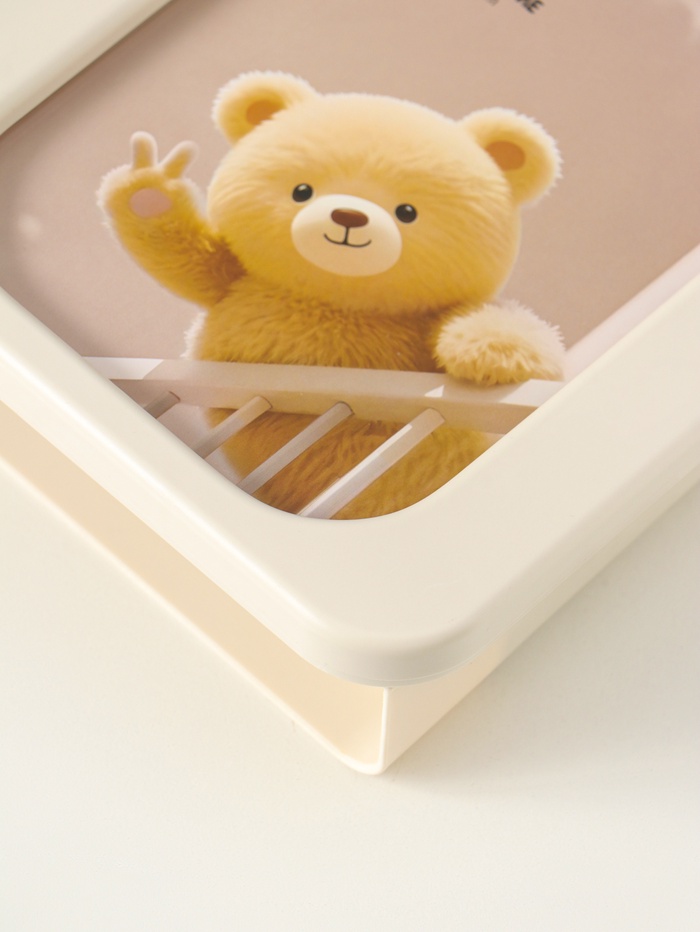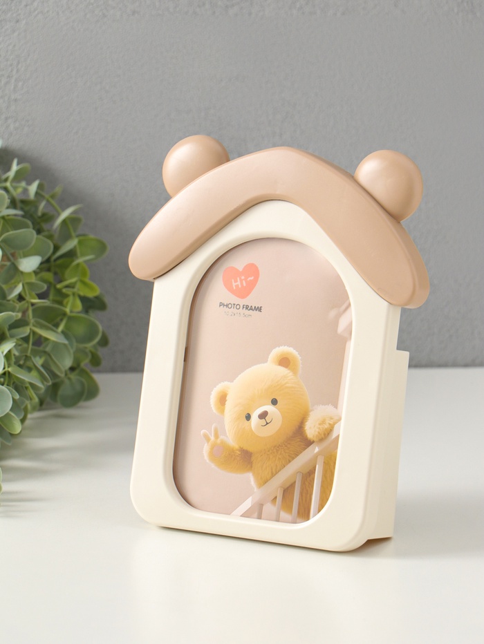 Фоторамка для фото 10×15 см с карандашницей «Домик с ушками мишки», пластик, бело-бежевый, 4.8×16.7×20 см