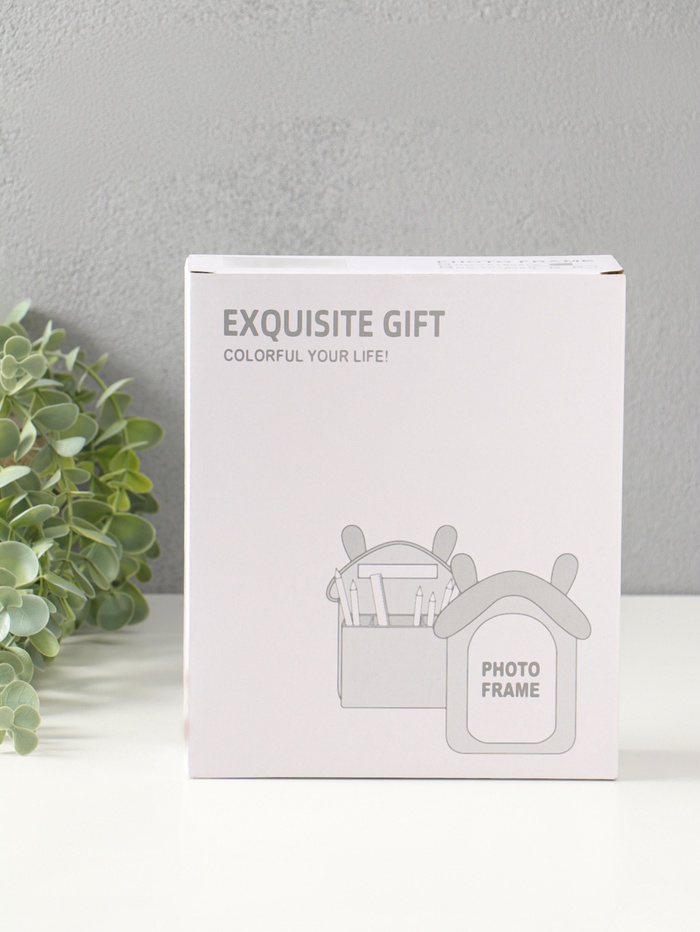 Эта милая фоторамка с карандашницей станет тёплым и практичным дополнением в детской комнате или на рабочем столе. Её уютный дизайн в виде домика с забавными ушками создаёт атмосферу домашнего тепла и уюта, идеально подходя для хранения самого важного снимка — первой фотографии из роддома, памятного кадра с праздника или портрета близкого человека.