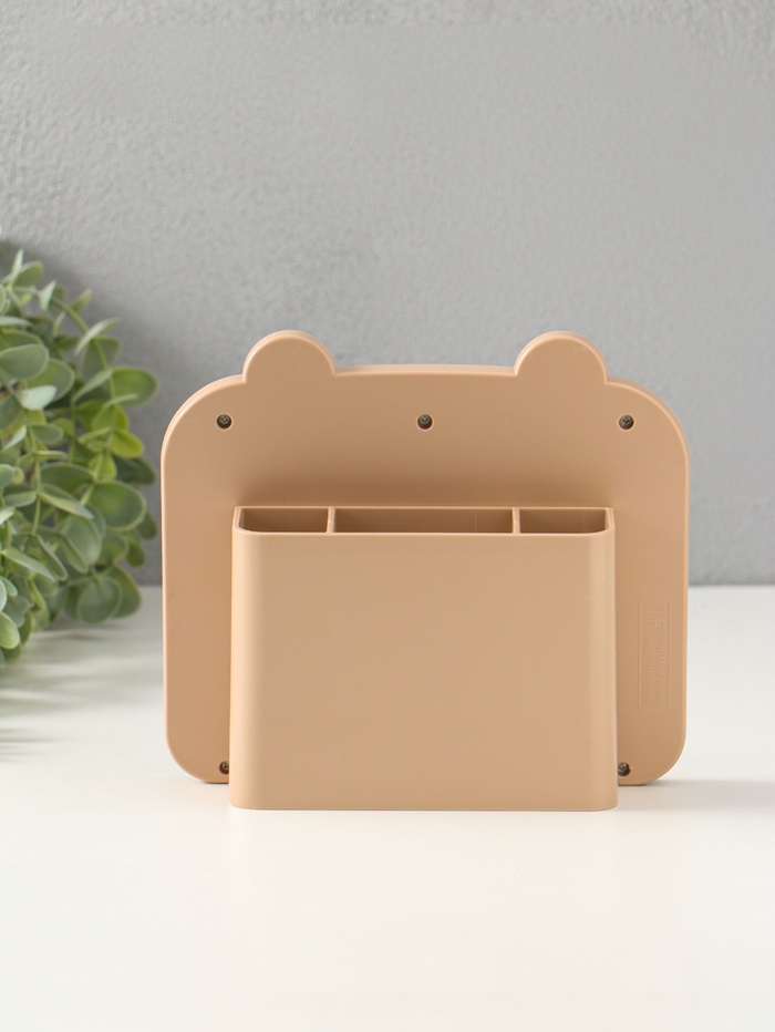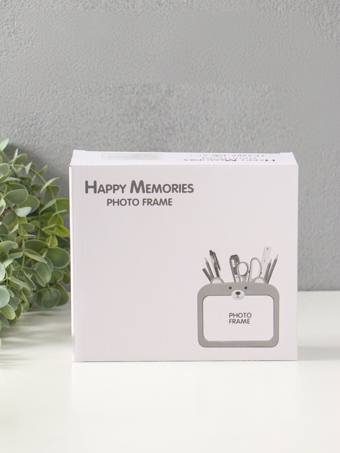 Фоторамка для фото 10×15 см с карандашницей «Мишутка», пластик, бежевый, 5×17.2×15.3 см