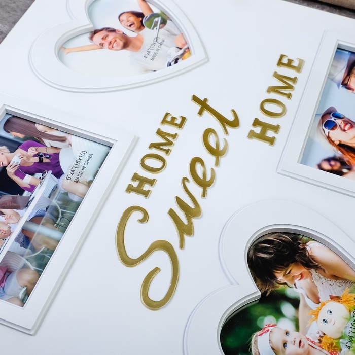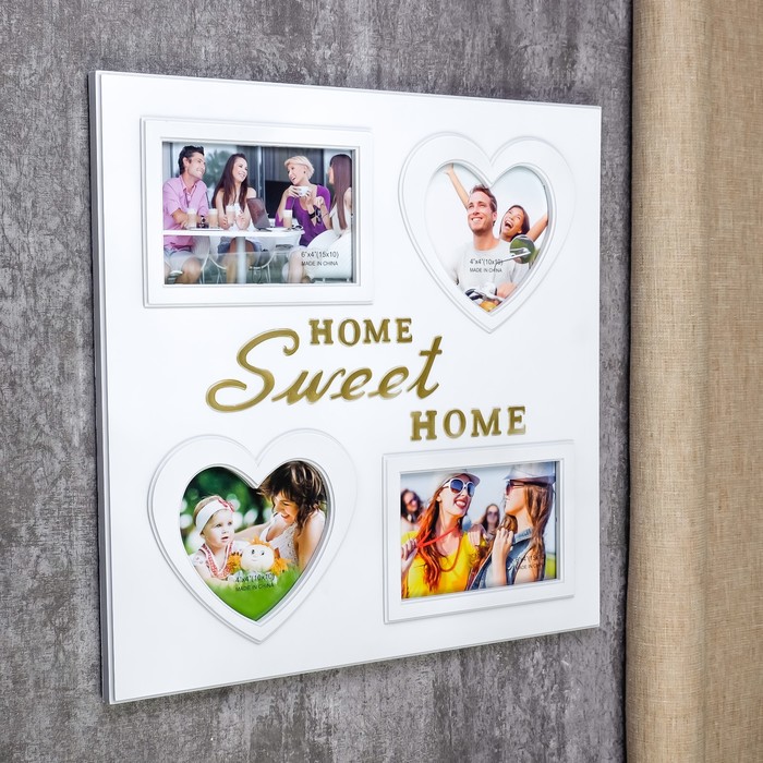 Фоторамка - коллаж на 4 фото 10×10 см, 10×15 см «Дом, милый дом», пластик, белая, 41×40 см