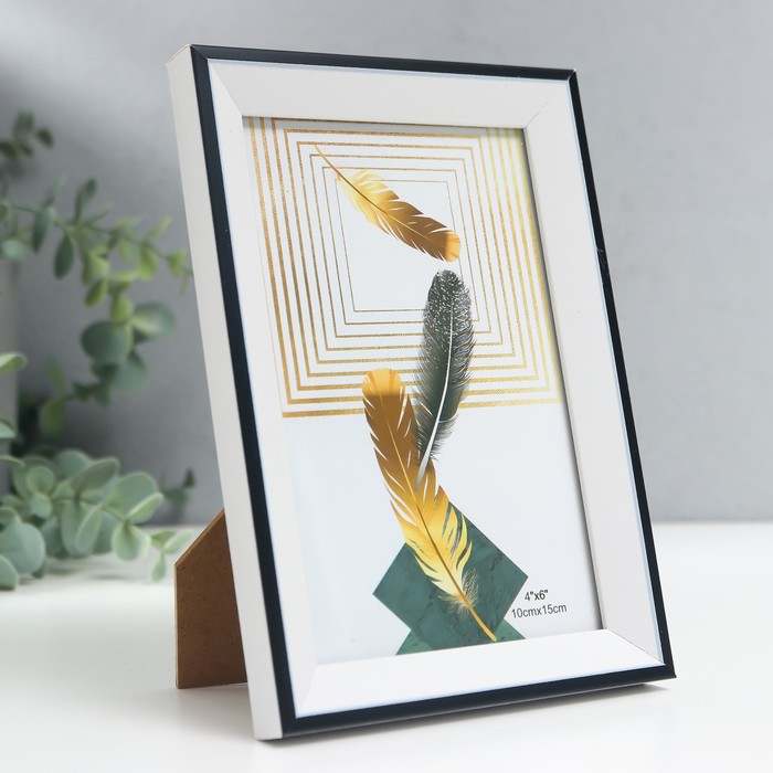 Фоторамка для фото 10×15 см «Классика», пластик, белая с чёрной обводкой, 17×12 см