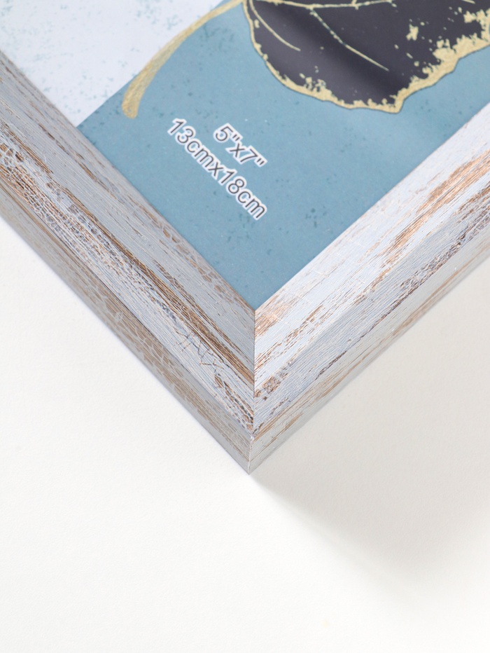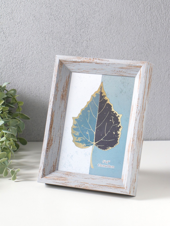 Эта фоторамка в стиле прованс создана для одной особенной фотографии размером 13×18 см. Её серо-голубой оттенок и лаконичный пластиковый багет шириной 30 мм привносят в интерьер лёгкость и спокойствие французского кантри. Установите её на стол с помощью задней подставки или повесьте на стену — вы выбираете, как лучше показать ваш снимок.
