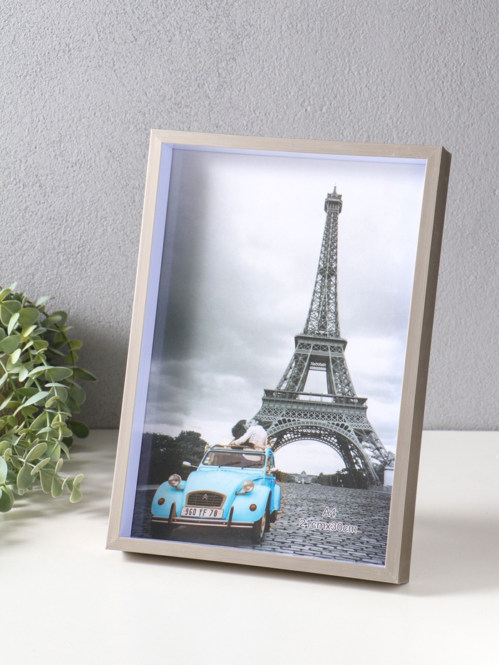 Эта элегантная фоторамка формата А4 создана, чтобы подчеркнуть значимость вашего особенного момента. Её классический дизайн с серебристым профилем и белым фоном делает фотографию центром внимания, не отвлекая на себя. Идеальное решение для дипломов, сертификатов, художественных работ или самой важной семейной фотографии, которую вы хотите видеть каждый день.