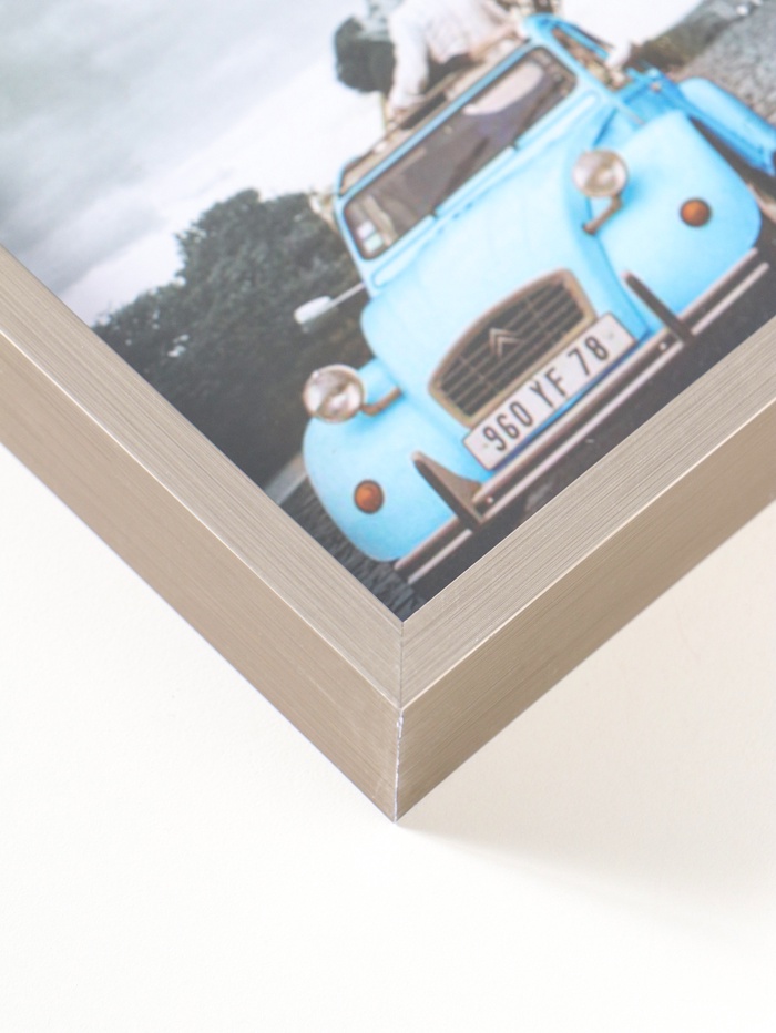 - Стильное оформление: сочетание серебристой узкой рамки и белого поля визуально расширяет пространство снимка.