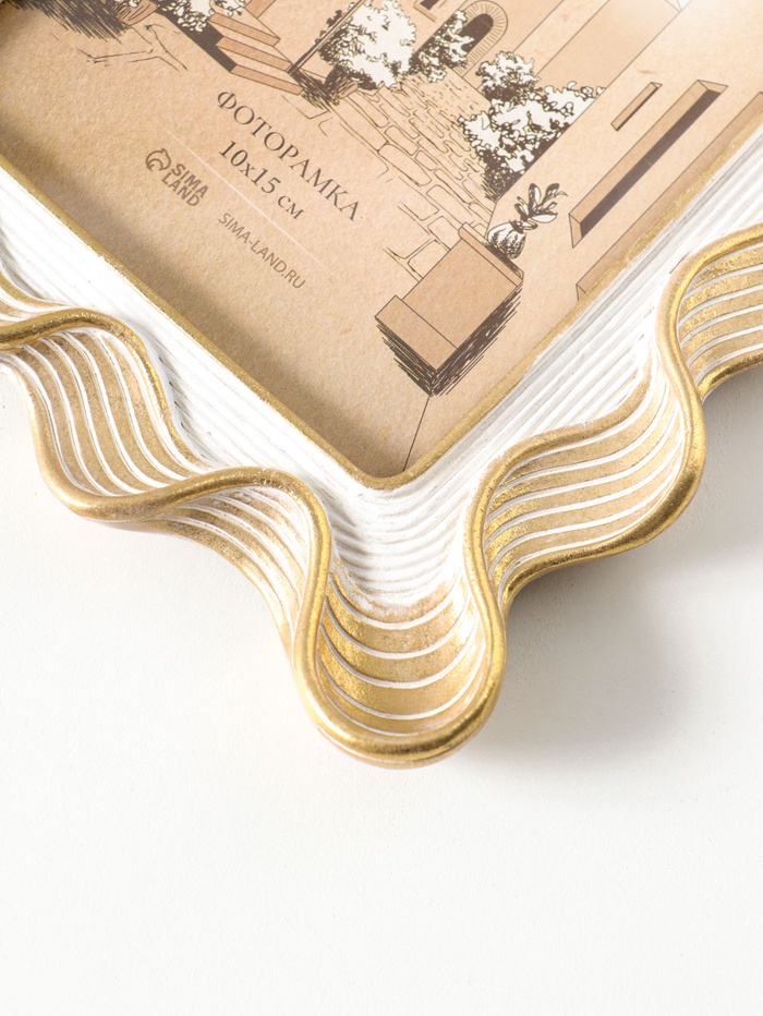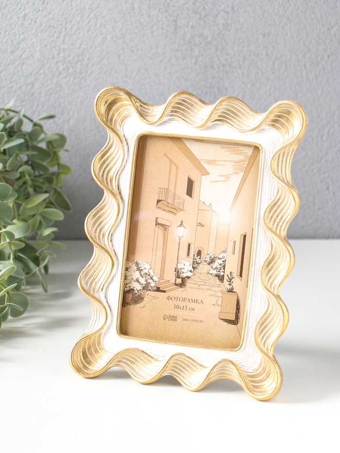 Фоторамка полистоун 10х15 см "Орнамент волна" белая с золотом 15,9х2,2х20,9 см