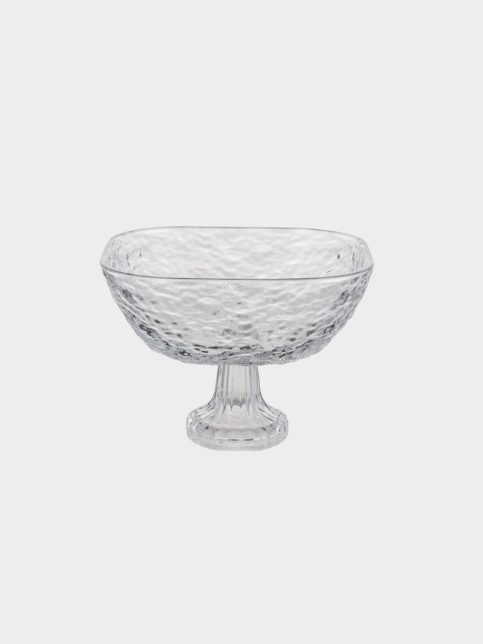 Свежесть на виду — порядок на столе! Фруктовница на ножке — квадратная стеклянная ваза с рельефной поверхностью для ягод, нарезанных фруктов или десертов. Её приподнятая форма улучшает циркуляцию воздуха, а прозрачность делает содержимое частью интерьера.