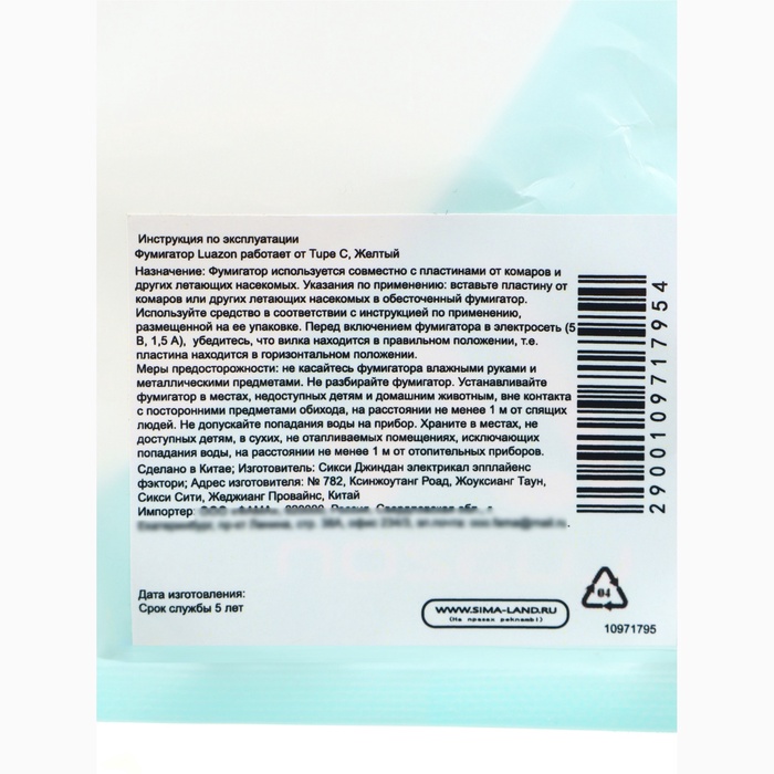 Технические характеристики Фумигатор USB - Type - C для жидкости от комаров, жёлтый, SAFEX