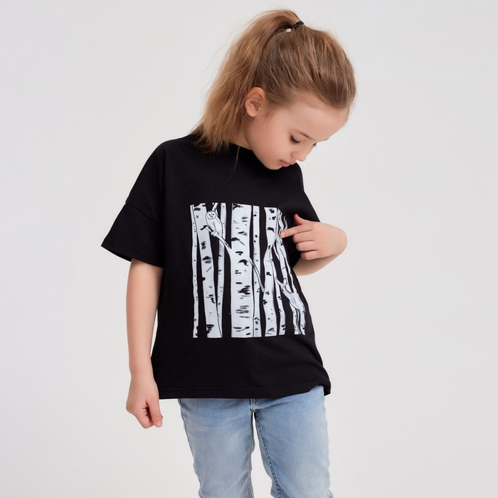 Футболка детская MINAKU «Берёза», чёрная, рост 146 см