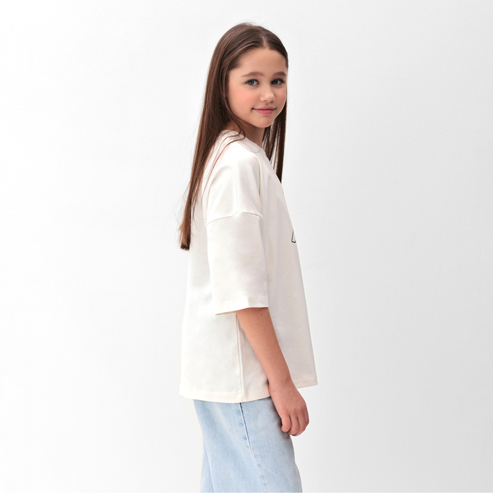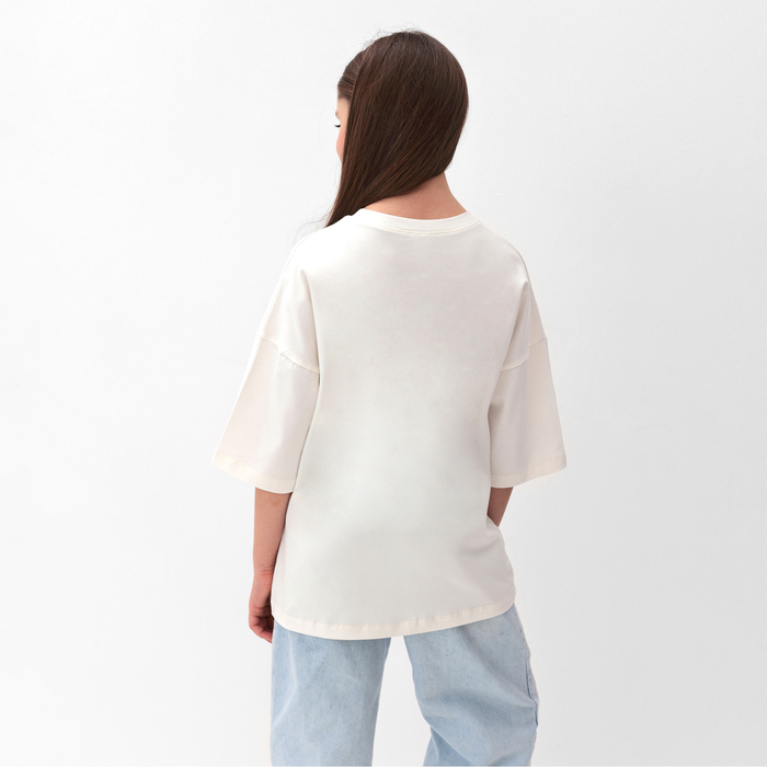 Футболка детская MINAKU: Exclusive print, цвет молочный, рост 128 см