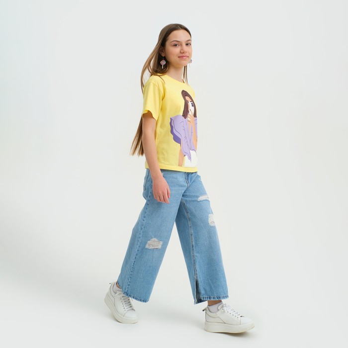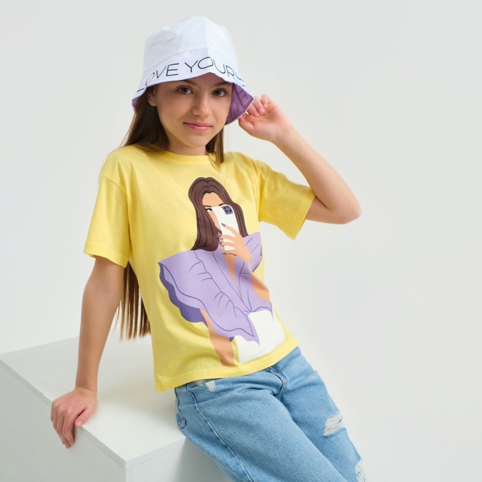 Футболка для девочки KAFTAN: Selfie, жёлтая, рост 134-140 см