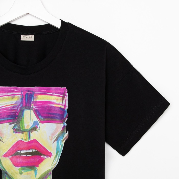 Футболка женская MINAKU Girl, чёрная, размер 48