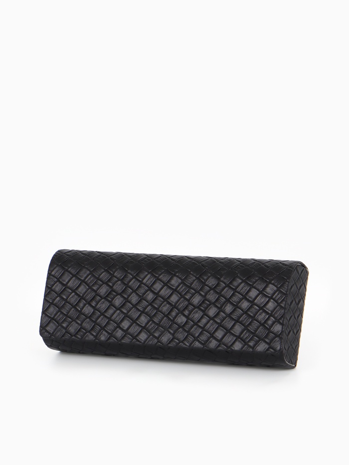 Этот чёрный футляр для очков с магнитной застёжкой сочетает минималистичный дизайн с удобством использования. Магнит обеспечивает бесшумное и плавное закрытие.