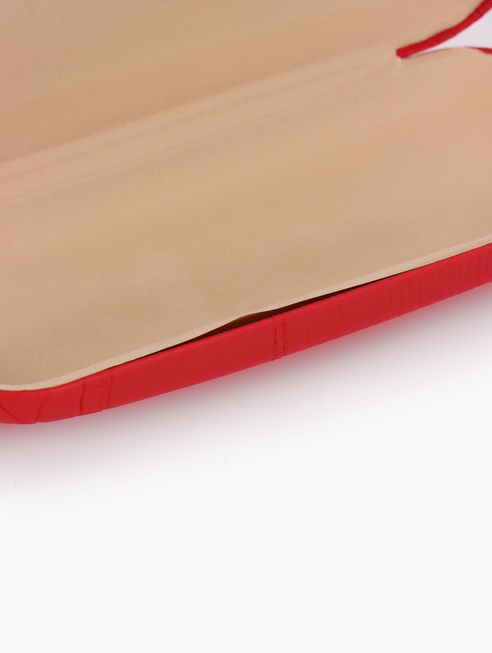 Этот красный футляр для очков с застёжкой-хлопушкой добавляет яркий акцент в повседневные аксессуары. Компактный размер удобен для ношения в женской сумке или кармане.