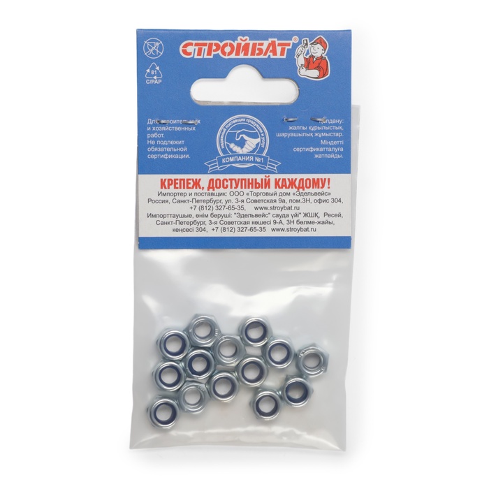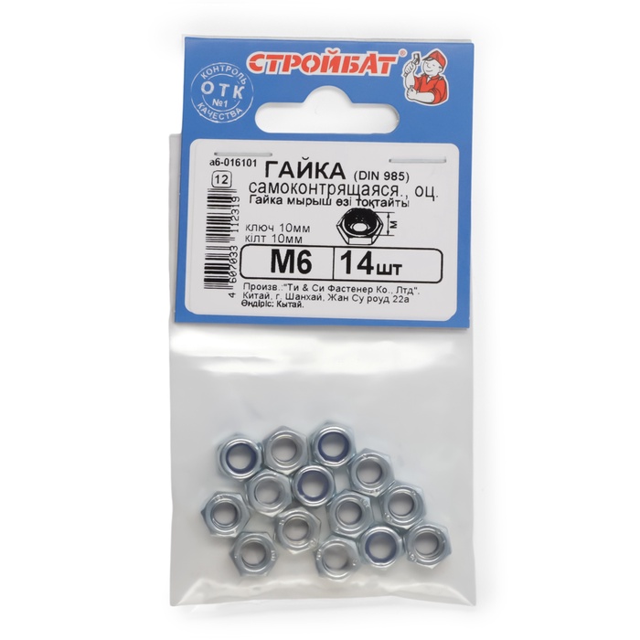 Технические характеристики Гайка СТРОЙБАТ, самоконтрящаяся, DIN 985, класс прочности 6, оцинкованная, M6, 14 шт