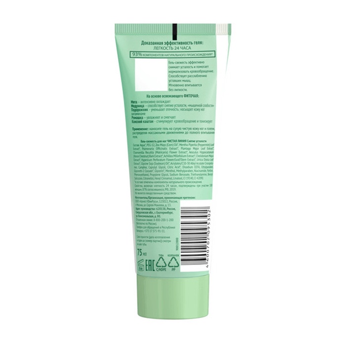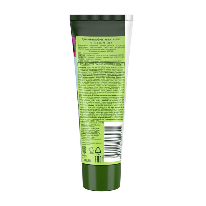 Гель-свежесть для ног Чистая линия «Снятие усталости», мята и медуница, 75 мл
