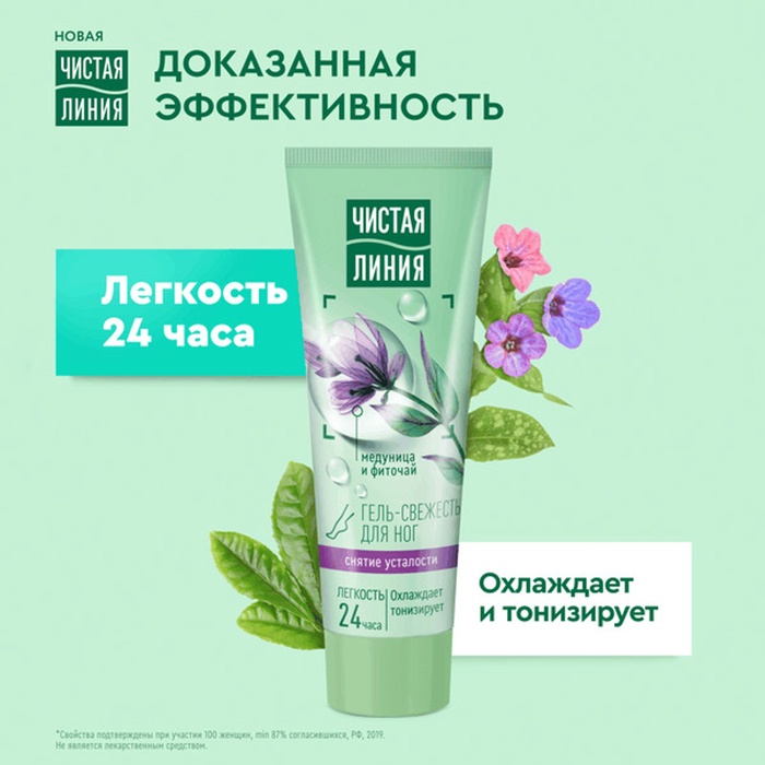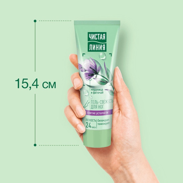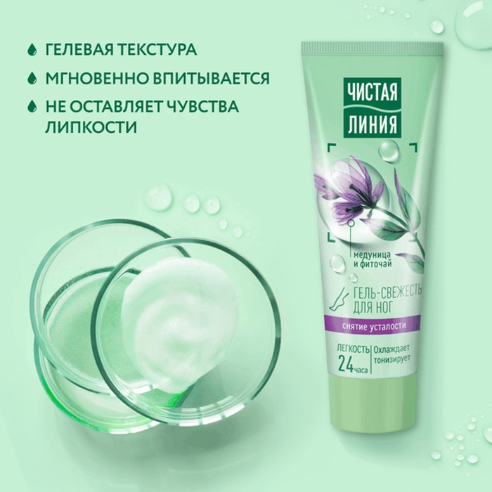 Для легкости ножек попробуйте гель-свежесть Чистая Линия снятие усталости. Формула продукта разработана на основе освежающего фиточая с мятой, медуницей, подорожником, ромашкой, конским каштаном. Гель эффективно снимает усталость и помогает нормализовать кровообращение. Способствует расслаблению уставших мышц. Мгновенно впитывается без ощущения липкости.