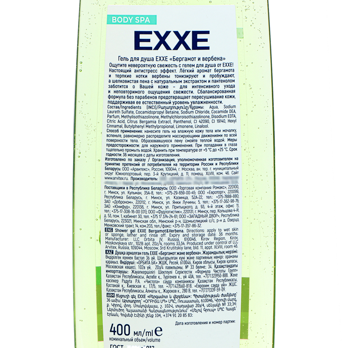 Гель для душа EXXE "Бергамот и Вербена", 400 мл