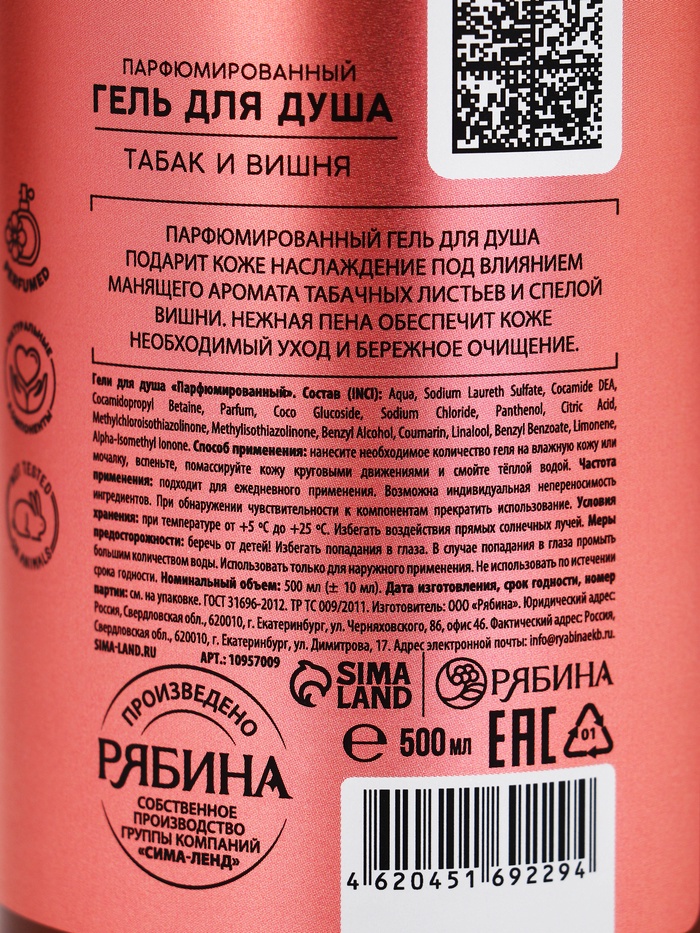 Технические характеристики Гель для душа парфюмированный, аромат табак и вишня, 500 мл, laPOETIQUE