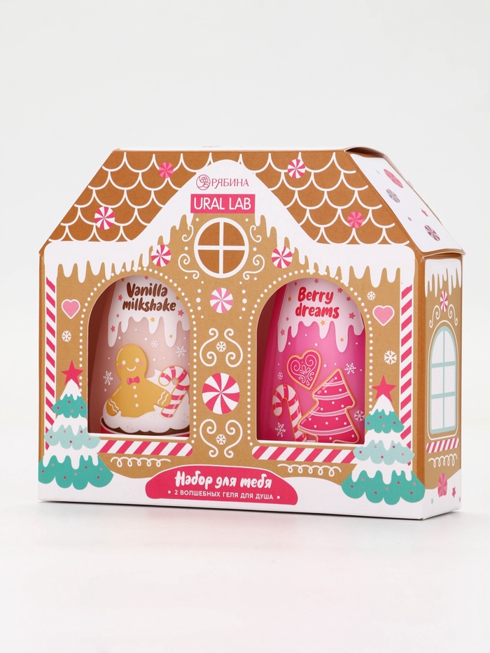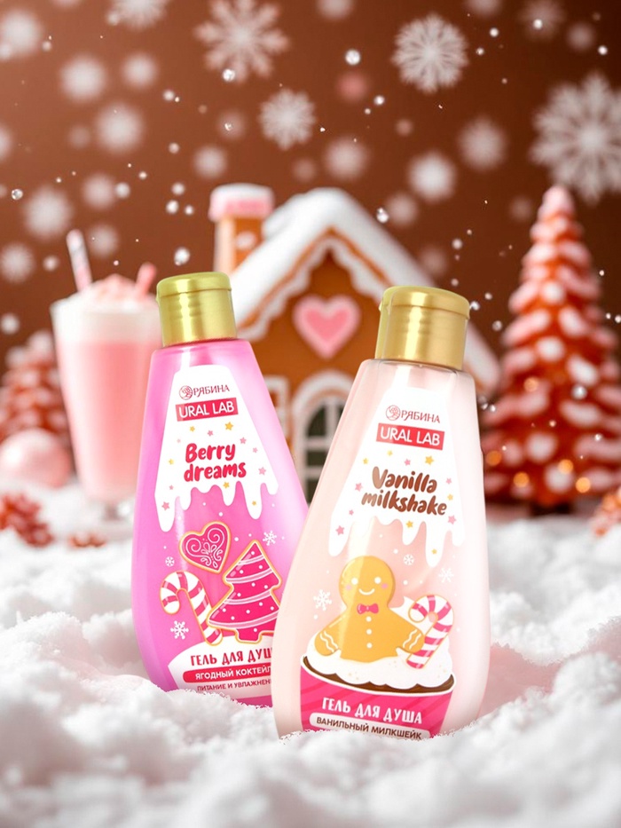 Гель для душа «С Новым годом», vanilla milkshake, набор 2 шт х 200 мл, URAL LAB
